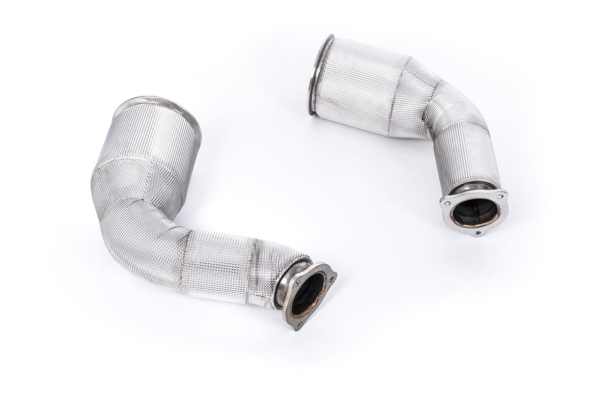 Milltek Sport Large-Bore Downpipes are perfect when looking to improve both performance and sound. These downpipes are fabricated with a larger diameter than standard OEM parts, meaning that there is significantly more space for more gas to exit the engine and pass through, increasing efficiency. Used with our Catalyst Bypass Pipe, you can expect significant power-gain without any restriction on gas-flow made by a catalyst.